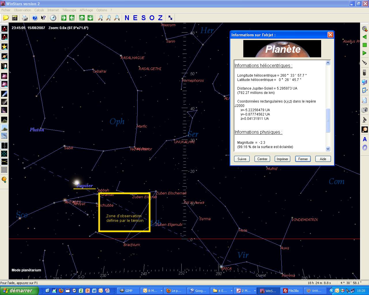 Une vérification astronomique montre effectivement que la Lune n'est pas visible à cette heure (fin croissant, couché depuis plus d'une heure). Par contre, on constate que la planète Jupiter est tout près de la direction d'observation indiquée par le témoin, et qu'elle est particulièrement brillante (magnitude -2). Il est toutefois étonnant qu'elle ait été perçue grosse comme la Lune.