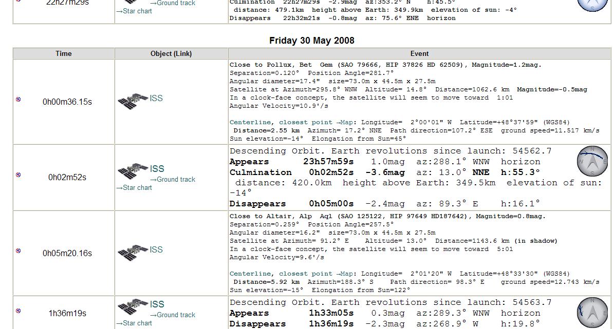 Observations successives de phénomènes lumineux dans le ciel : observations astronomiques puis observation du passage de la station spatiale internationale.