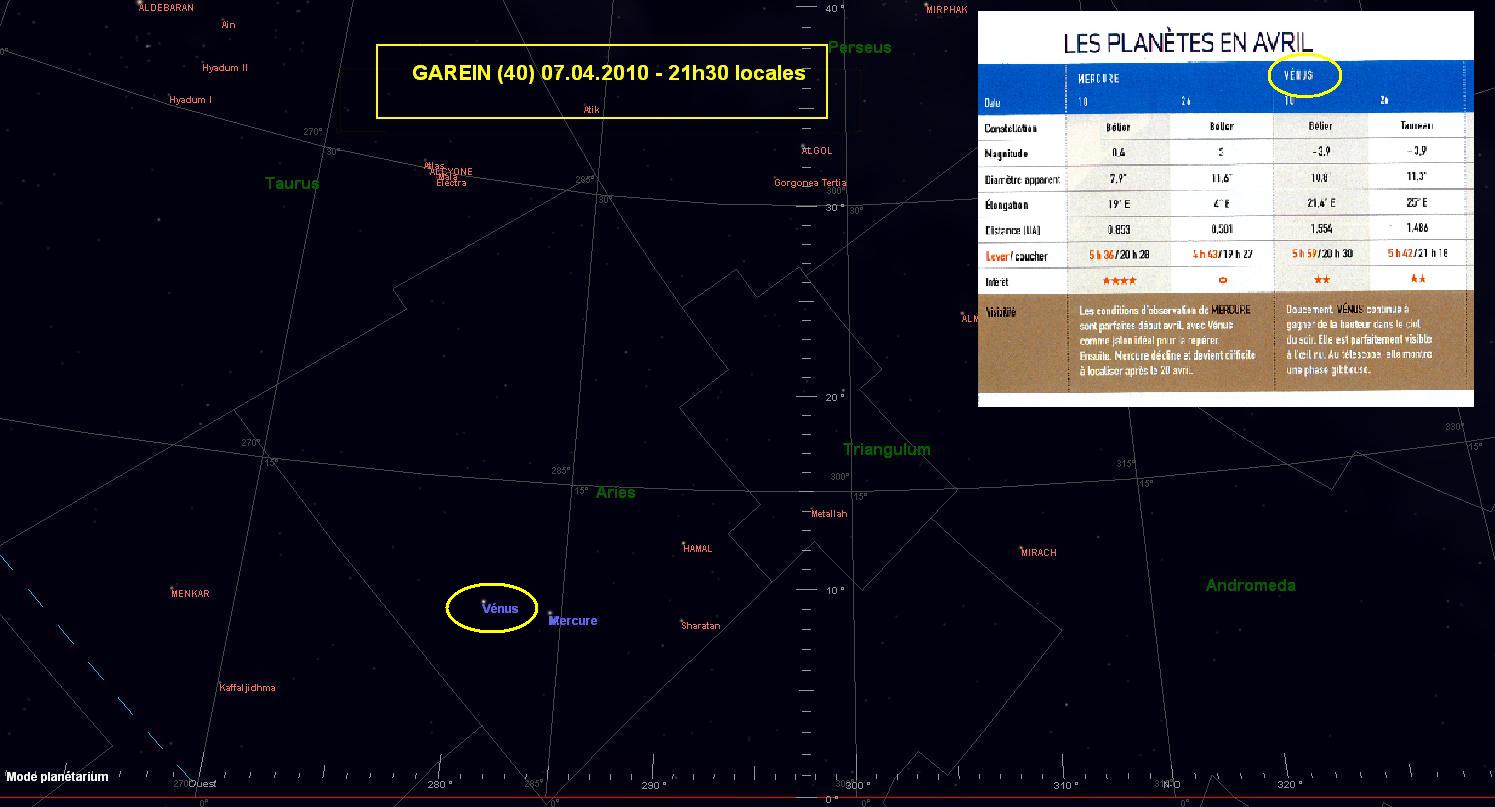 La configuration astronomique du ciel à la date et heure de l'observation montre la planète Vénus (de magnitude -3.9 facilement observable à l'œil nu) dans le secteur du ciel observé ( au 280° à 21H30 locales). L'observation a été faite plusieurs jours d'affilée et le témoin se rappelle avoir observé le même phénomène à la même époque l'année précédente.