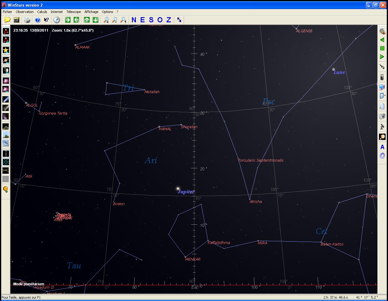 L'étoile observée était donc Arcturus, étoile très brillante (Magnitude 0), qui se couche effectivement vers 23h30 à l'Ouest, en glissant vers le Nord. Comme toutes les étoiles brillantes, sa couleur vire vers l'orange lors du couchant, et elle scintille particulièrement. (Voir le document "carte celeste Ouest").