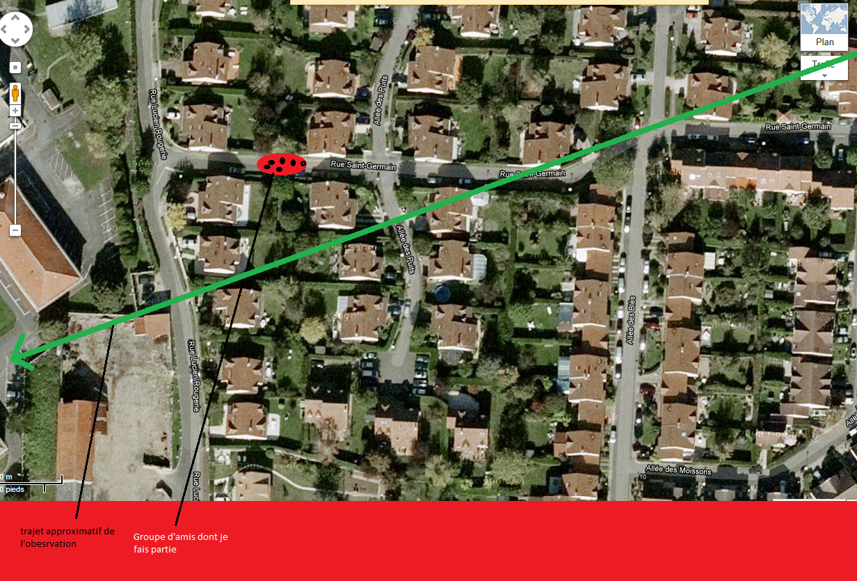 La direction vers l'Ouest-Sud-Ouest et la durée de seulement quelques secondes, éliminent l'hypothèse d'une rentrée de débris spatial.