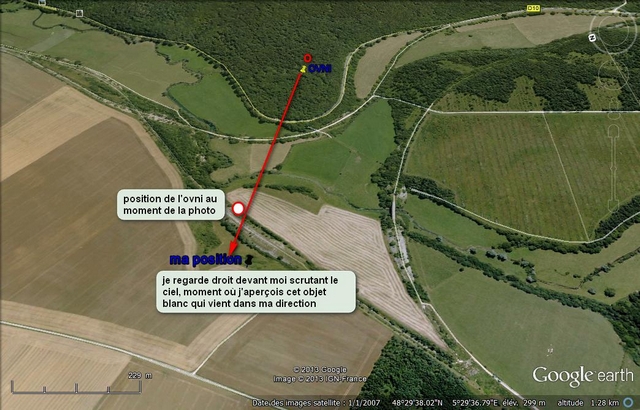Le changement de luminosité de l'objet depuis le zénith, où il apparaît blanc sur la photo, jusqu'à l'horizon où il apparaît gris, oriente plutôt vers l'hypothèse d'un objet assez bas, que vers l'hypothèse d'un nuage. De plus, le témoin voit nettement grossir l'objet au long de l'observation, ce qui favorise l'hypothèse d'un objet à très basse altitude. Si l'objet était à 100m d'altitude, un vent de 12km/h lui aurait fait traverser la moitié du ciel (90°) en une minute, en parcourant 200m.