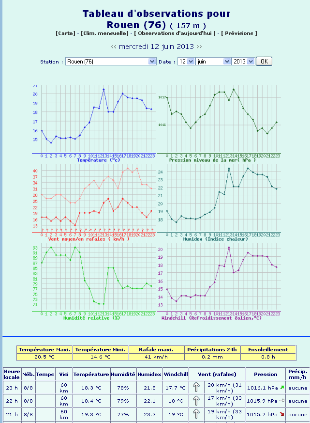 Le vent de Sud (relevé Meteociel à Rouen) n'est pas tout à fait cohérent avec le déplacement vers le Nord Ouest constaté par le témoin, mais le relief particulier (la rivière La Risle coule le long d'une côte abrupte, voir carte) peut provoquer des vents locaux à basse altitude.