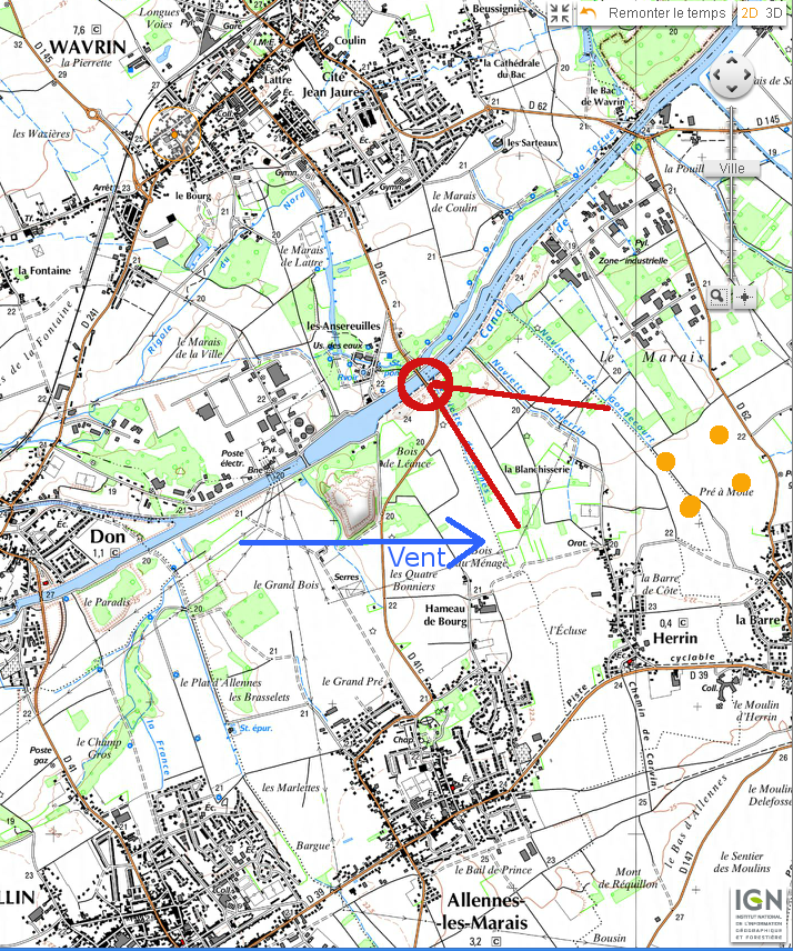 Le relevé Meteociel indique un léger vent d'ouest météo.