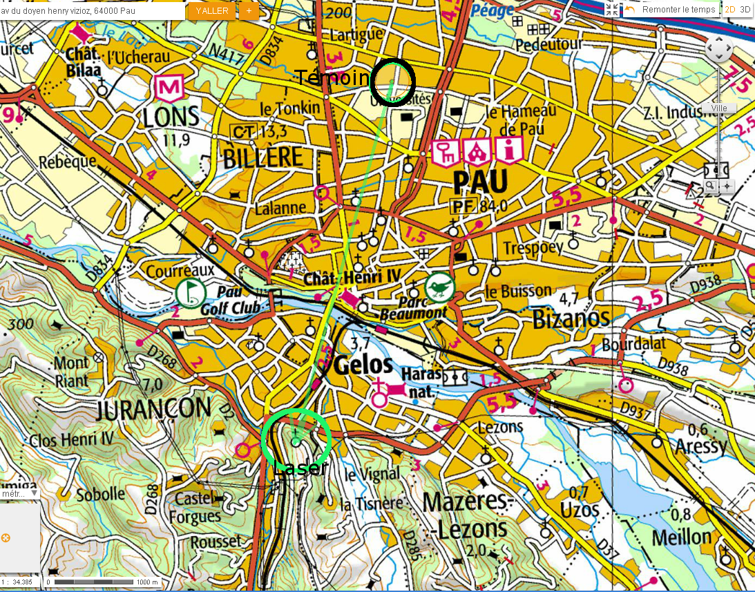 Il y avait ce soir là un festival "Cultures électroniques-Soleils numériques" avec une installation laser vert sur le Coteau de Guindalos à Gelos, au sud de Pau. Le programme est sur festival Acces(s).