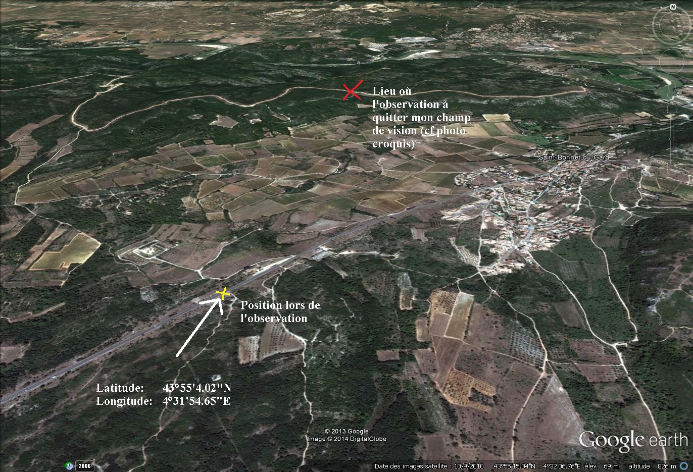 Le 17 janvier 20147 à 19h05 un automobiliste sur la D 6036 en direction de Saint-Bonnet-du-Gard ( 30) est surpris de voir durant quelques secondes le passage dans le ciel d'une lumière puissante provenant d'une boule blanche suivie d'une trainée. Aucun bruit particulier n'est entendu. Aucun autre témoignage ne sera rapporté au GEIPAN.
