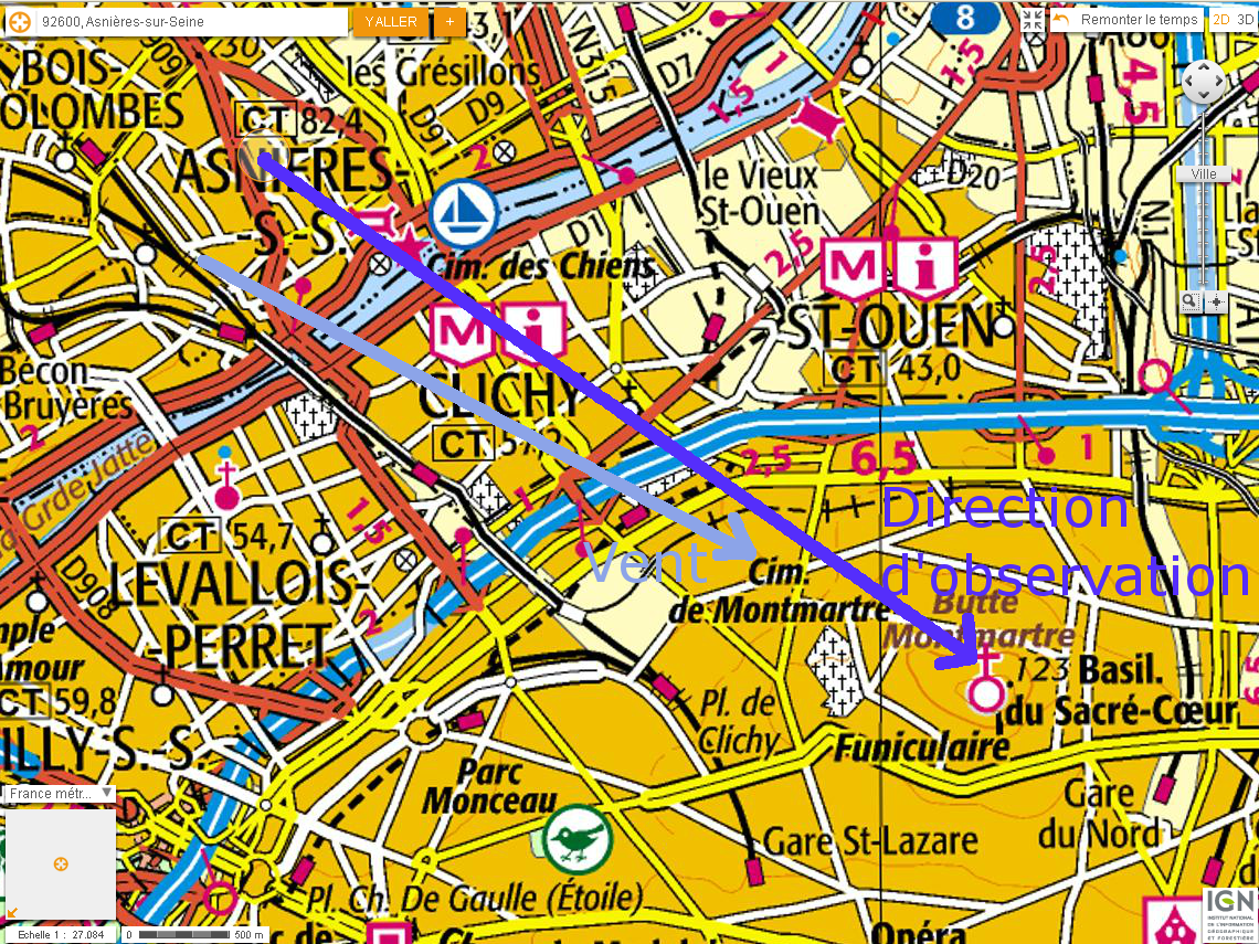 Le témoin observe les boules quasi stationnaires, se déplaçant très légèrement vers sa gauche en s'afaiblissant : les lanternes poussées par le vent s'éloignent du témoin, légèrement vers l'Ouest. Meteociel indique à Roissy un léger vent d'Ouest ou Nord Ouest de 13 à 19 km/h : Météo.