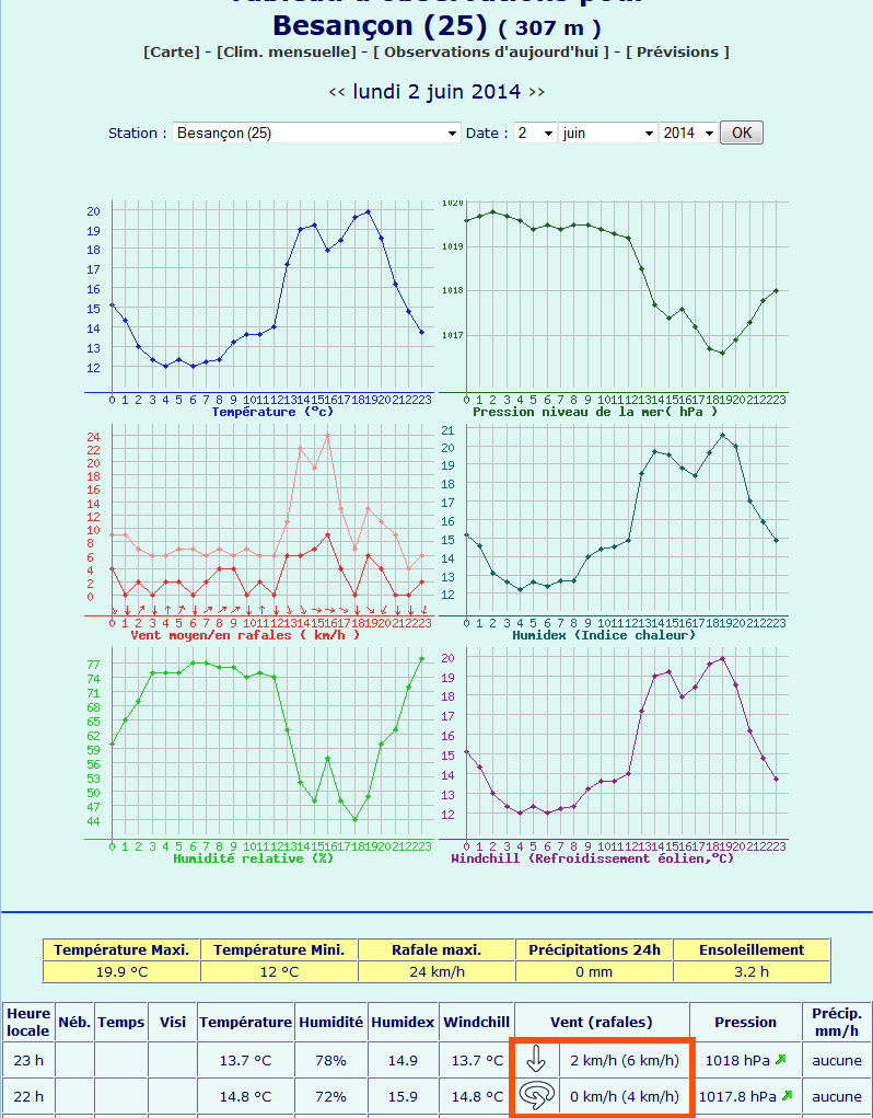 Le relevé Météociel de Besançon indique un très léger vent de Nord. Néanmoins, les lâchers de lanternes en semaine sont rares, et le fait que cet objet lumineux soit unique ne permet pas non plus de consolider cette hypothèse. Le vent instable et faible ne permet pas non plus de confirmer que l'objet vole avec le vent.