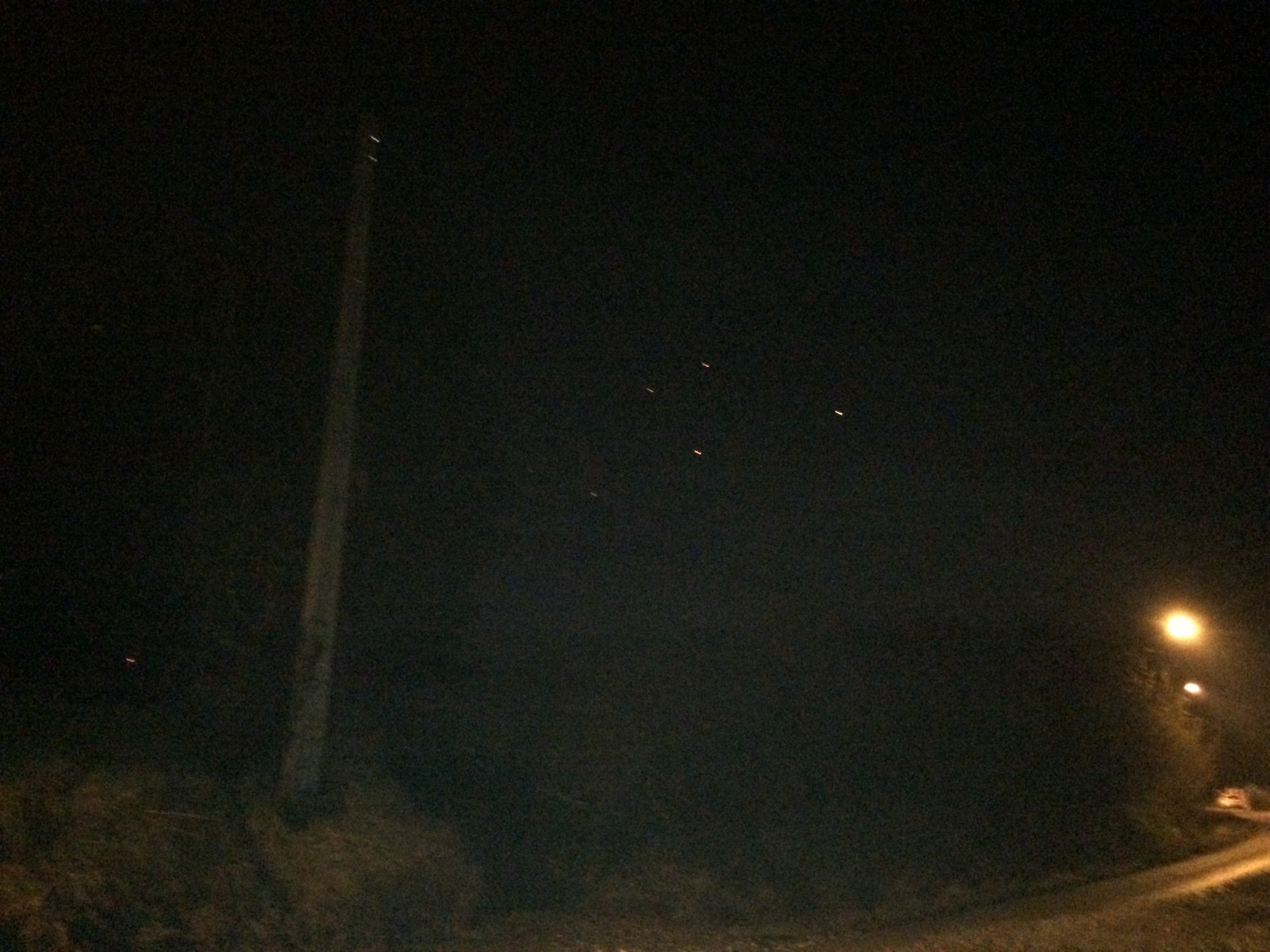 Le 7 mars 2015 à 0h05, un témoin observe dans le ciel, alors qu'il circule en voiture, un groupe de 9 lumières rouges au-dessus d'une colline proche. Les lumières semblent se déplacer silencieusement et rapidement en formation. Le témoin s'arrête pour prendre des photos, puis, une fois rentré chez lui, continue l'observation avec sa famille jusqu'à disparition du phénomène.