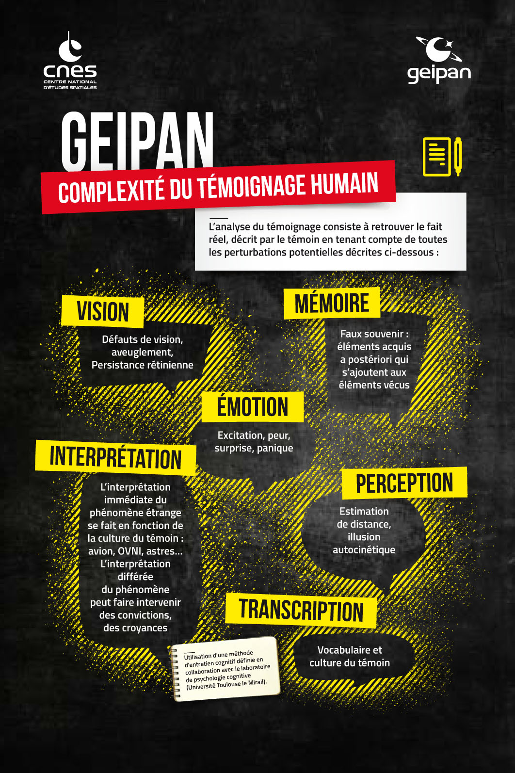 Répondre aux interrogations et aux attentes de la population face aux phénomènes aérospatiaux non identifiés ( ) est ainsi l'une des principales missions du GEIPAN (Groupe d'Etudes et d'Informations sur les Phénomènes Aérospatiaux Non Identifiés).