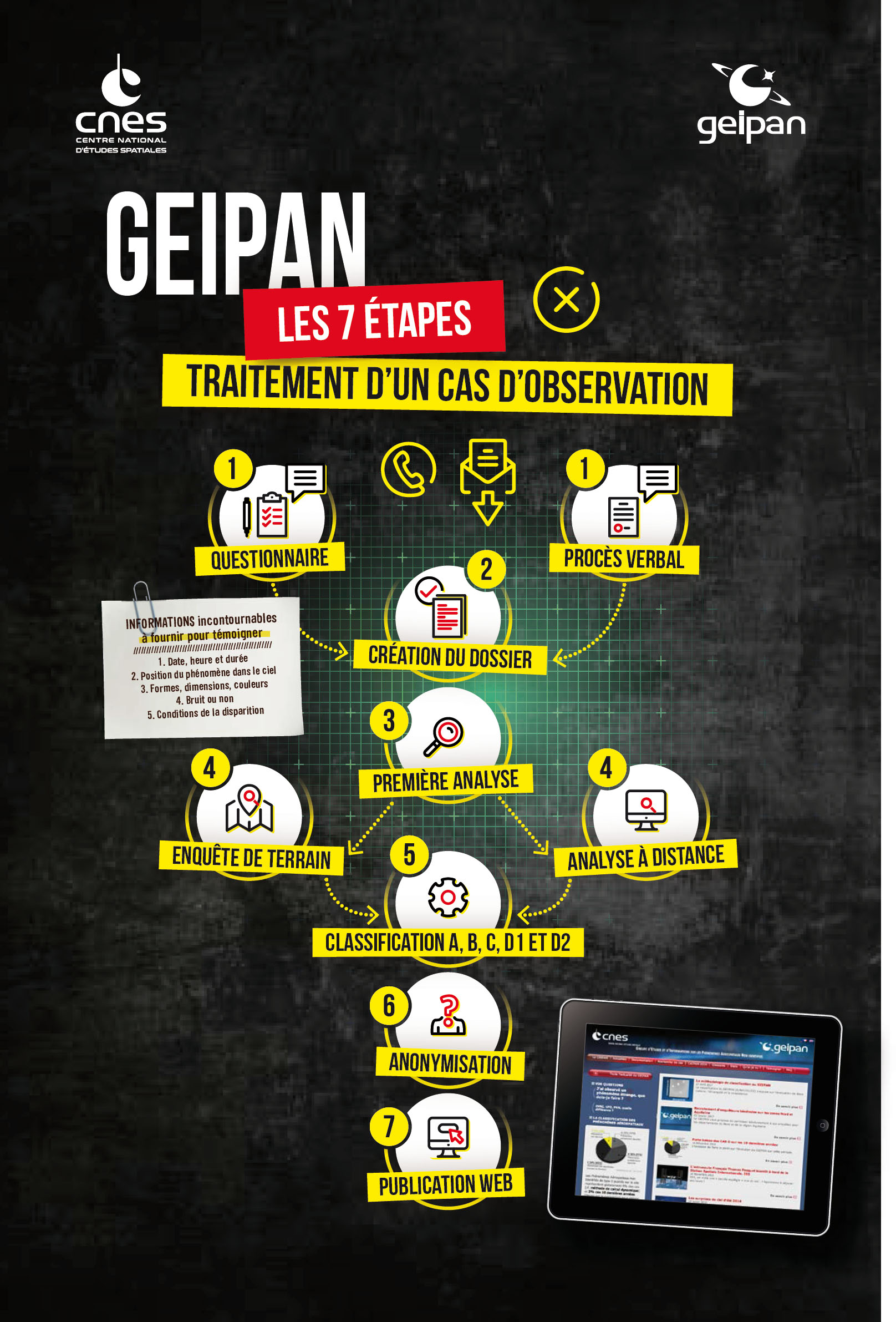 Le GEIPAN, Groupe d’Études et d’Information sur les Phénomènes Aérospatiaux Non Identifiés fait partie intégrante des missions du Centre National d'Études Spatiales (CNES). Le GEIPAN a pour missions :